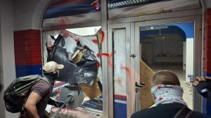Граѓаните кои организираа собир пред Безбедносната и информативна агенција (БИА) на булеварот Ослобоѓења во Нови Сад вечерва дојдоа во просториите на Српската напредна партија (СНС), а потоа ги скршија прозорците, влегоа и целосно ја демолираа.