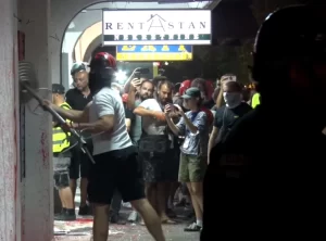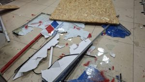Мажите ги скршија прозорите и упаднаа во просториите на Напредната партија со скали, столчиња и други предмети.