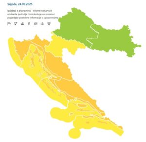 Жолто предупредување е во сила за регионот Карловац, вклучувајќи ја и Банија. Во моментов не се издадени предупредувања за северозападна и источна Хрватска.