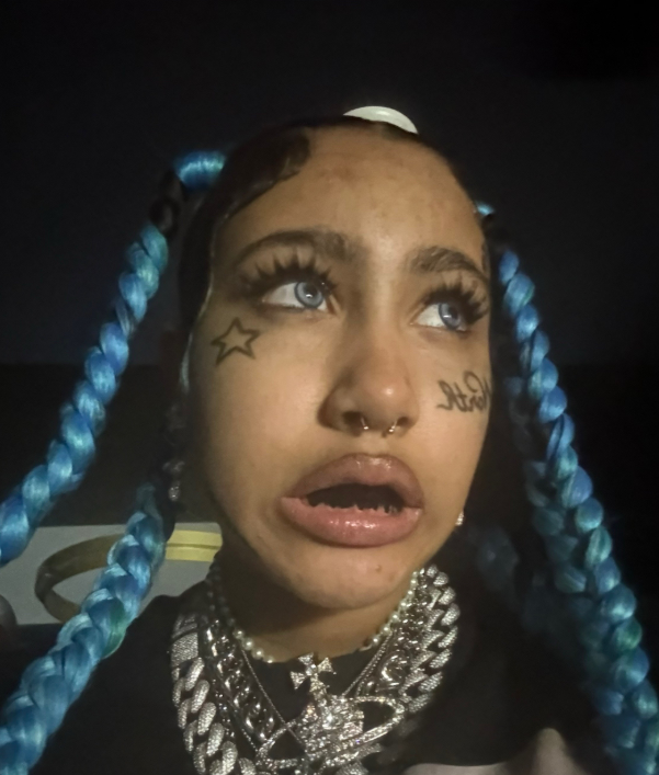 12-годишната ќерка на Ким Кардашијан и Кање Вест го покажа својот нов изглед со лажни тетоважи на лицето, сини контактни леќи и лажен пирсинг на носот, сето тоа за неодамнешниот концерт на OsamaSon каде што беше со пријатели.