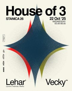 Денеска ќе се одржи дванаесетчасовен мултимедијален фестивал „Хаус оф Три“ (House of 3) на три сродни и препознатливи локации во центарот на Скопје — во „Три Кичен&Бар“ и во ноќните клубови „Клуб 1212“ и „Станица 26“.