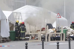 Пожарникарите гаснат пожар во шатори во Ќациланд по пукањето во кое напаѓачот В. А. ранил човек