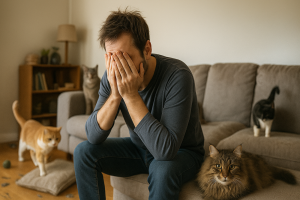 Кога некои од постарите миленичиња умреле, тој се надевал дека работите ќе се вратат во нормала. Наместо тоа, таа речиси веднаш ги заменила со нови. “Кога постарата мачка и заморчиња умреле, таа веднаш доби две нови мачки против мојата волја”, напишал тој. “И реков дека не сакам мачки или кутии за ѓубре во нашиот стан. Јас не сум љубител на мачки”.