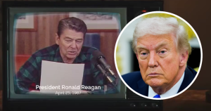Владата на Онтарио емитуваше реклама на американската телевизија во која цитираше делови од говор од 1987 година во кој тогашниот американски претседател Роналд Реган се изјасни против царините.