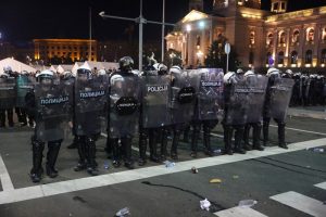 Според извештаите на новинарите од белградските медиуми, вечерашните тензии ги предизвикале следбениците на Вучиќ, кои фрлале пластични шишиња кон граѓаните кои ја поддржуваат Дијана Хрка. Од друга страна, возвратиле на ист начин, а потоа меѓусебно летале пиротехнички средства. Полицијата не реагирала, туку ги засилила кордоните што ги разделувале двете групи.