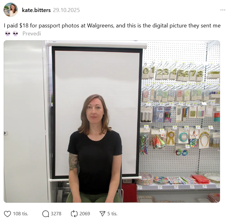 Правењето добра слика од пасош е вистинска мака и има малкумина кои се задоволни со крајниот резултат. Но фотографијата добиена од Кејт, 39, од Минесота, стана предмет на потсмев и направи милиони луѓе низ целиот свет да се насмејат откако ја сподели на интернет.