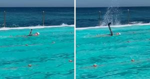 Видеото, објавено на социјалните мрежи од популарната веб-страница Brown Cardigan, започнува сосема безопасно – со сцени на пливачи во иконскиот базен Bondi Icebergs во Сиднеј. Но, наскоро камерата зумира кон една пливачка која, целосно опуштена, гледа во својот мобилен телефон додека плива грбно во својата лента.