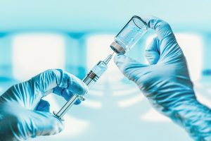 A doctor or scientist in the laboratory preparing with a syringe and liquid the vaccine for children or adults