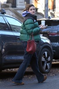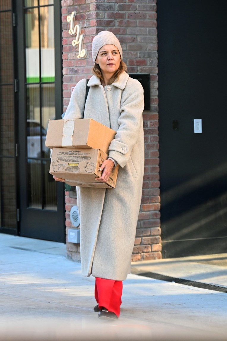 Сури избра лежерна комбинација за студеното време во Њујорк – зелена пухаста јакна од North Face, дуксер, сини фармерки и популарните кафеави UGG папучи. Носеше црвена чанта, кафе за носење и мобилен телефон во рацете. Нејзината мајка, 47-годишната Кејти, исто така беше во опуштено издание, носејќи долг беж капут, соодветна капа и црвени панталони.