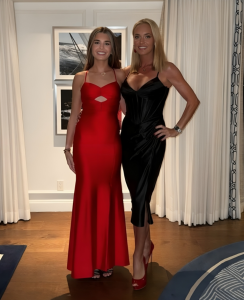 На една фотографија се појавува и нејзината мајка Ванеса Трамп, поранешната сопруга на Доналд Трамп Џуниор и сегашниот партнер на Вудс . Ванеса (48) избра црн ансамбл, а сето тоа го надополни со црвени високи потпетици.