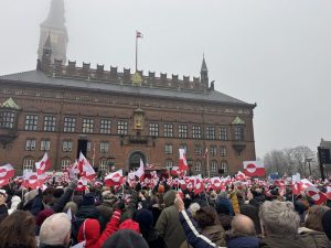 Градоначалничката на Копенхаген, Сисе Мари Велинг (СФ), им се обрати на демонстрантите собрани на плоштадот пред градското собрание, изразувајќи јасна поддршка за Гренландците. „Ние стоиме зад нашите пријатели од Гренланд. Пораката од Копенхаген е гласна и јасна. Гренланд не е стока“, рече таа, според Политикен.