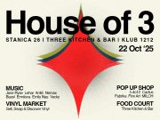 Денеска ќе се одржи дванаесетчасовен мултимедијален фестивал „Хаус оф Три“ (House of 3) на три сродни и препознатливи локации во центарот на Скопје — во „Три Кичен&Бар“ и во ноќните клубови „Клуб...
