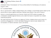 Амбасадата на САД со порака до Приштина: Длабоко сме разочарани, престанете со сите еднострани...